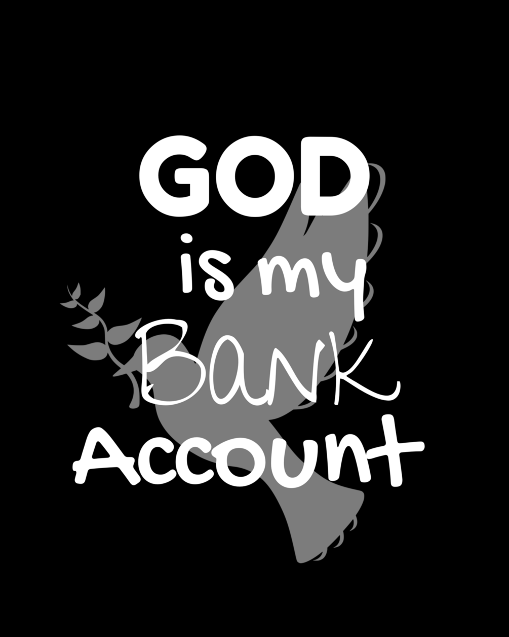 “God is my Bank Account” is a phase that has altered my mindset. God can provide more than what money can buy. Therefore, I give all praise to God. Over the years, He has provided great health, shelter, food, transportation, jobs, friendships, and etc. However, God always provided grace and mercy. Something money can’t buy. He gave us Jesus Christ...something money can’t buy. Yes! God is my Bank Account is a mindset! Once you alter your mindset, He will bring you peace. No more worrying and stressing. Go to God and He will provide! “God is my Bank Account” t-shirts.